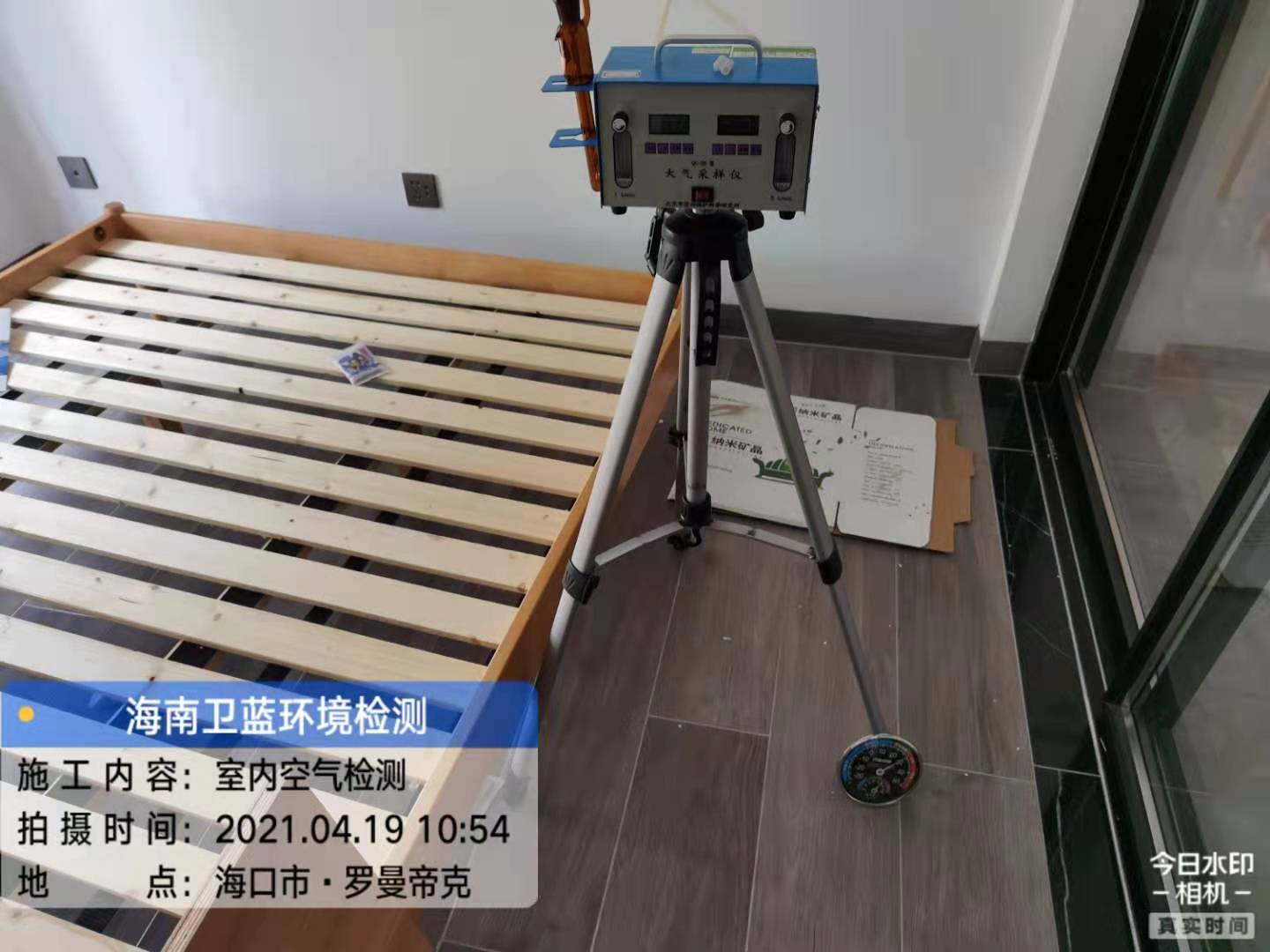 按照預(yù)定時間,衛(wèi)藍環(huán)境檢測上門采樣人員于四月十九日上午十時許到達海南省海口市秀英區(qū)長濱4路羅曼帝克,進行室內(nèi)空氣檢測的甲醛采樣工作。業(yè)主按照GB/T 18883-2002《室內(nèi)空氣質(zhì)量標準》要求,在采樣前對每個需要采樣的房間進行單獨密閉,累積密閉時長12小時,現(xiàn)場室內(nèi)溫度27.5°C左右,經(jīng)現(xiàn)場勘察環(huán)境適合采樣,采樣人員現(xiàn)場組裝儀器,穿上鞋套,進行采樣作業(yè)。