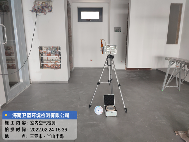 按照約定時(shí)間,衛(wèi)藍(lán)環(huán)境檢測(cè)上門采樣人員于準(zhǔn)時(shí)到達(dá)三亞市半山半島,進(jìn)行室內(nèi)空氣檢測(cè)的甲醛采樣工作。客戶按照GB/T 18883-2002《室內(nèi)空氣質(zhì)量標(biāo)準(zhǔn)》要求,在采樣前對(duì)每個(gè)需要采樣的房間進(jìn)行單獨(dú)密閉,累積密閉時(shí)長(zhǎng)12小時(shí),經(jīng)現(xiàn)場(chǎng)勘察環(huán)境適合采樣,采樣人員現(xiàn)場(chǎng)組裝儀器,穿上鞋套,進(jìn)行采樣作業(yè)。