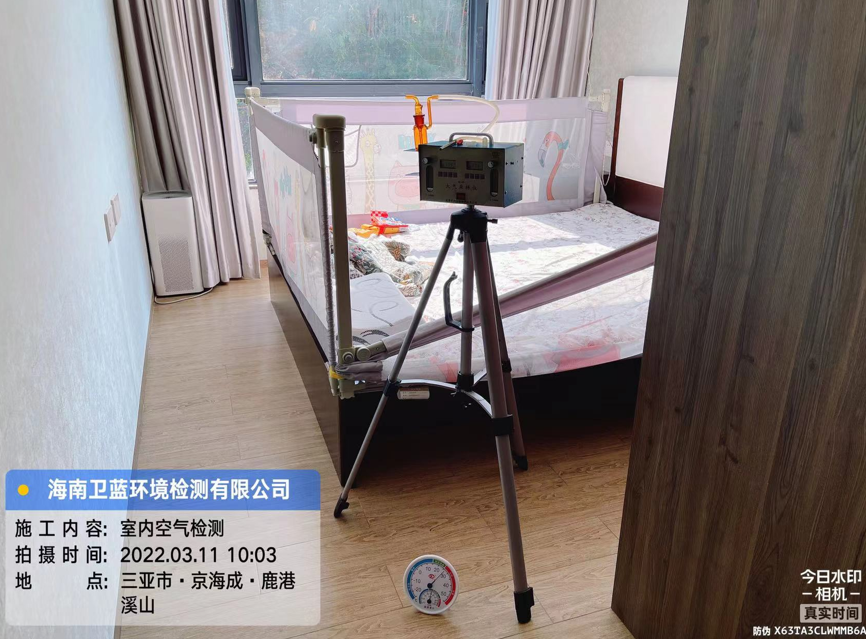 按照預(yù)定時(shí)間,衛(wèi)藍(lán)環(huán)境檢測上門采樣人員于三月十一日上午十時(shí)許到達(dá)三亞市京海城·鹿港溪山,進(jìn)行室內(nèi)空氣檢測的甲醛采樣工作。業(yè)主按照GB/T 18883-2002《室內(nèi)空氣質(zhì)量標(biāo)準(zhǔn)》要求,在采樣前對每個(gè)需要采樣的房間進(jìn)行單獨(dú)密閉,累積密閉時(shí)長12小時(shí),現(xiàn)場室內(nèi)溫度25°C左右,經(jīng)現(xiàn)場勘察環(huán)境適合采樣,采樣人員現(xiàn)場組裝儀器,穿上鞋套,進(jìn)行采樣作業(yè)。