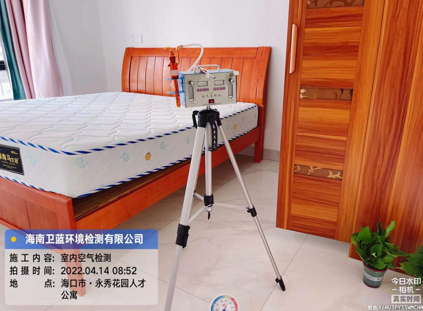 按照預定時間,衛(wèi)藍環(huán)境檢測上門采樣人員于四月十四日上午八時許到達??谑杏佬慊▓@人才公寓,進行室內空氣檢測的甲醛采樣工作。業(yè)主按照GB/T 18883-2002《室內空氣質量標準》要求,在采樣前對每個需要采樣的房間進行單獨密閉,累積密閉時長12小時,現(xiàn)場室內溫度24°C左右,經現(xiàn)場勘察環(huán)境適合采樣,采樣人員現(xiàn)場組裝儀器,穿上鞋套,進行采樣作業(yè)。